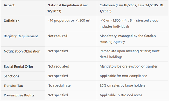 Large property holders operating in Catalonia are subject to a broader set of legal obligations, including: