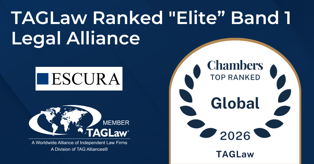 TAGLaw, una de las alianzas globales de abogados más importante, con más de 280 despachos en más de 105 países, ha sido distinguida nuevamente por Chambers & Partners con la designación «Elite» para el año 2026, siendo este el ranking más prestigioso en el ámbito de las redes legales. Este es el decimotercero año que TAGLaw recibe este reconocimiento desde que Chambers & Partners comenzó a clasificar las redes y alianzas legales en 2013, y el quinto año consecutivo clasificado como «Band 1» desde que Chambers amplió sus clasificaciones de redes legales en 2020.